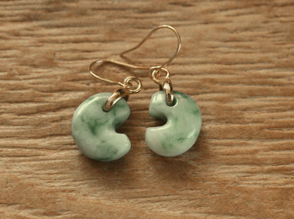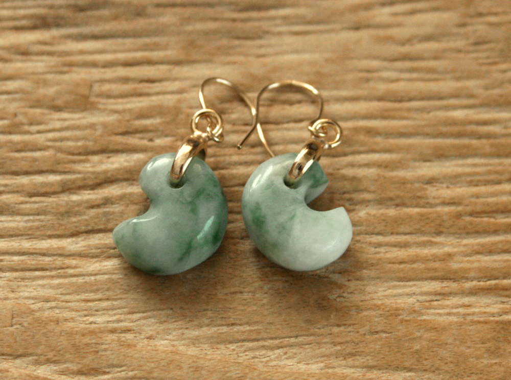 産地:糸魚川産(新潟県・国産) 制作:清山 作 地元糸魚川の翡翠工芸師 サイズ:10.5mm*8mm*5mm×2個 パーツ(ポスト):K18 パーツ(バチカン):真鍮 この翡翠は地元糸魚川の天津神社(安産、合格、家内・交通安全)・ 奴奈川神社(縁結び)にてお清め(翡翠お清め神事)致しました。