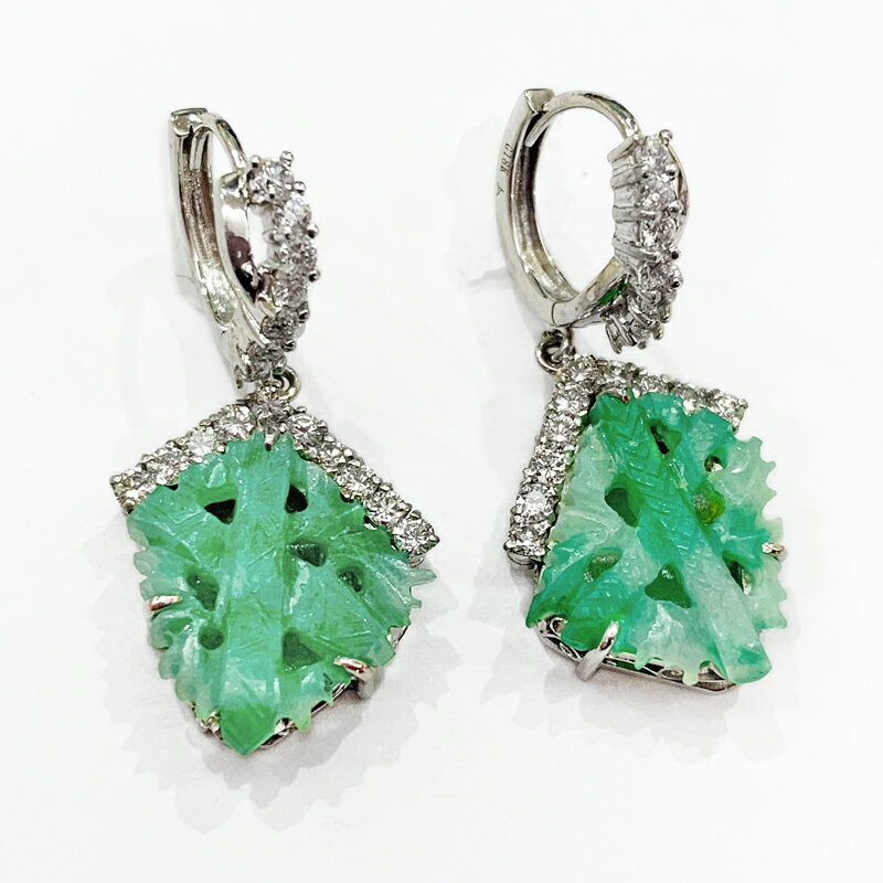 彫刻翡翠 天然翡翠 ヒスイ ひすい H 約12.6mm×W 約11.2mm ダイヤモンド 0.38ct/0.38ct(計:0.76ct) 竹 バンブー リーフ 葉っぱ ボタニカル 植物 ピアス PT900 プラチナ K18WG ホワイトゴールド【中古】【ジュエリー】MEJZ