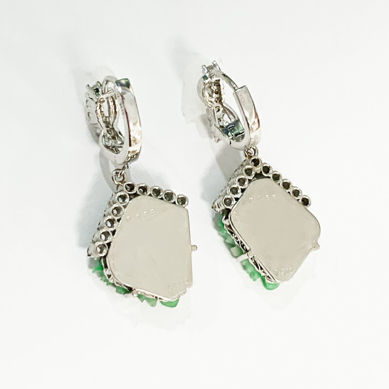管理番号 043926/2REW/MEJZ 素材 【地金】 PT900/K18WG 【石】 ヒスイ:H 約12.6mm×W 約11.2mm ダイヤモンド:0.38ct/0.38ct(計:0.76ct) サイズ 約H 30.5mm×W 14.8mm 重量:約10.4g 付属品 なし 宝石評価 【☆