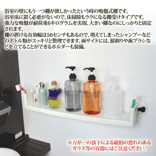 強力吸盤バス棚受け(吸盤式浴室用棚) 【ロングタイプ/棚幅56cm】 歯ブラシホルダー付き■商品内容浴室の壁にもう一つ棚が欲しかったという時の吸盤式棚です。